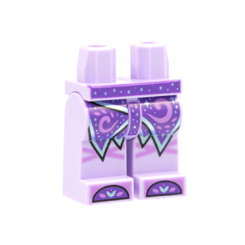 Teil 970c00pb1228 – Hüften und Beine mit dunkelviolettem Rock, mittelvioletten Wirbeln, metallisch hellblauen Punkten und Rand, dunkelviolettem Zehenmuster