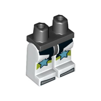 Teil 970c01pb61 – Hüften und weiße Beine mit schwarzem, schmalem Trikot, mittelgroßen azurblauen Stern-Knieschützern mit limettengrünen Riemen und silbernem Zehenmuster