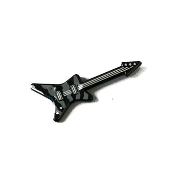Onderdeel 17356pb05 - Minifiguur, muziekinstrument, elektrische gitaar van het type 'ML' met parelmoeren donkergrijze zebrastrepen en zilveren snaren en brugpatroon