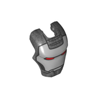 Onderdeel 80430pb04 - Minifiguur, groot scharnier aan de bovenkant van het vizier met zilveren gezichtsscherm, rode ogen, zwart randpatroon op de wangen