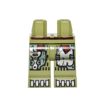 Onderdeel 970c00pb0584 - Heupen en benen met zandgroene en zilveren mechanische panelen en laarzen en donkerrood sjerppatroon