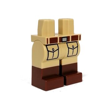 Onderdeel 970c00pb1450 - Heupen en benen met gevormde roodbruine onderbenen / laarzen en bedrukte shorts, riem met zilveren gesp en zwart zakkenpatroon