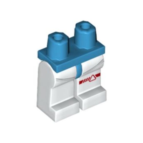 Onderdeel 970c01pb57 - Heupen en witte benen met donkerblauwgrijze gebogen lijnen, rode linkerknieband met driehoekpatroon