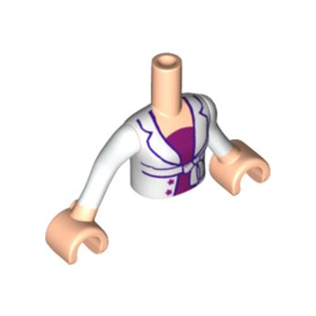 Onderdeel FTGpb030c01 - Torso Minipop Meisje Wit Open Jasje met Riem over Magenta Shirt Patroon, Licht Nougat Armen met Handen met Witte Mouwen