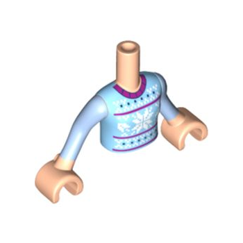 Onderdeel FTGpb149c01 - Torso Mini Doll Girl Fel Lichtblauwe Fair Isle Trui, Sneeuwvlokkenpatroon, Licht Nougat Armen met Handen en Fel Lichtblauwe Mouwen
