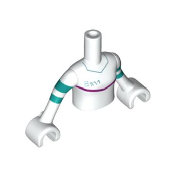 Onderdeel FTGpb212c01 - Mini-rompermeisjesjumpsuit met magenta strepenpatroon, witte armen met handen met turquoise strepen