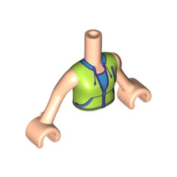 Onderdeel FTGpb257c01 - Torso Mini Doll Girl Lime Jacket Vest met zakken over donkerblauw shirtpatroon, licht nougat armen met handen