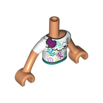 Onderdeel FTGpb352c01 - Torso Mini Doll Girl Witte Blouse Top met Bloemen en Vlinders Patroon, Nougat Armen met Handen met Witte Korte Mouwen
