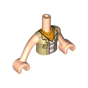 Onderdeel FTGpb363c01 - Torso Mini Doll Girl Bruin Vest over Wit en Lavendel Gestreept Shirt, Fel Licht Oranje Sjaalpatroon, Licht Nougat Armen met Handen
